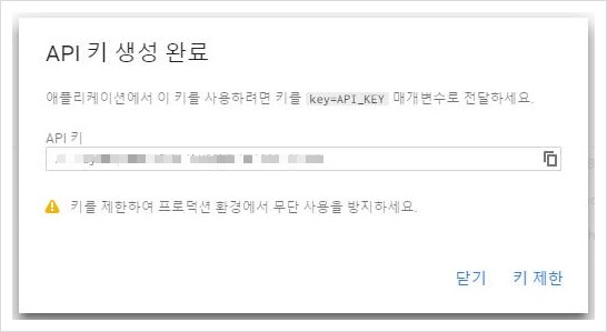 6. API키가 생성되었습니다.