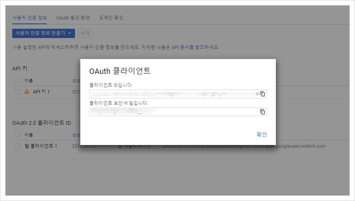 10. 구글 서버 API 키, 클라이언트 ID, 클라이언트 보안키 정보를 망보드 관리자>옵션설정에 입력합니다.