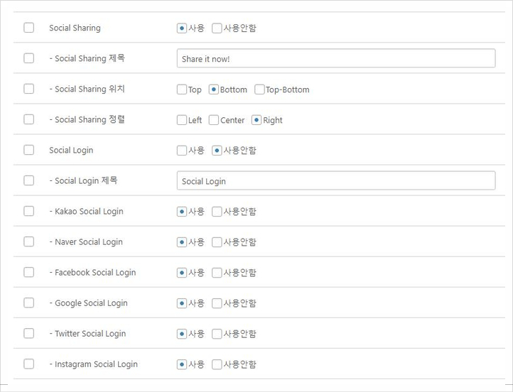 망보드 옵션설정에서 Social Login 옵션을 사용으로 설정하면 소셜 로그인 기능에 대한 세팅이 완료됩니다!