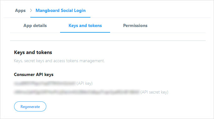 4. Consumer API Keys 하단에 Consummer Key, Consumer Secret 정보를 망보드 관리자>옵션설정에 입력합니다.